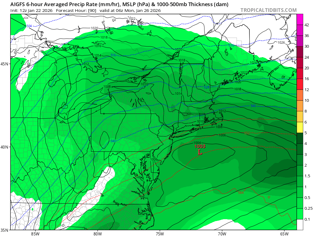 The fact that the AI GFS doesn't support the physics model is pretty telling IMO. This would be an absolutely devastating coup if the Euro were to cave. Like I said earlier, I think the GFS caves, maybe even at 00z... but I don't think this is over yet. We will get a last minute trend in one direction or another (hopefully positive).