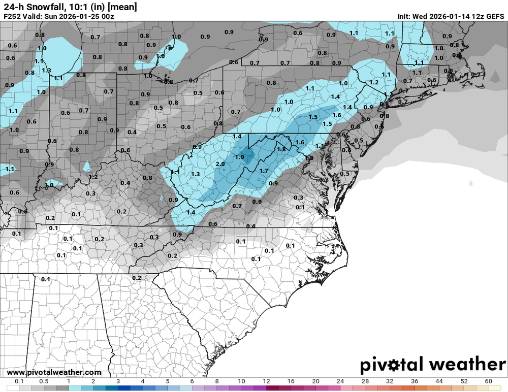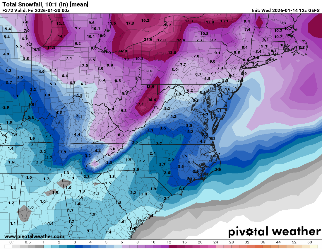 The 12z GEFS looks really good for later in the month. Really honking for next weekend. Majority of the snow mean is from day 9 onward.