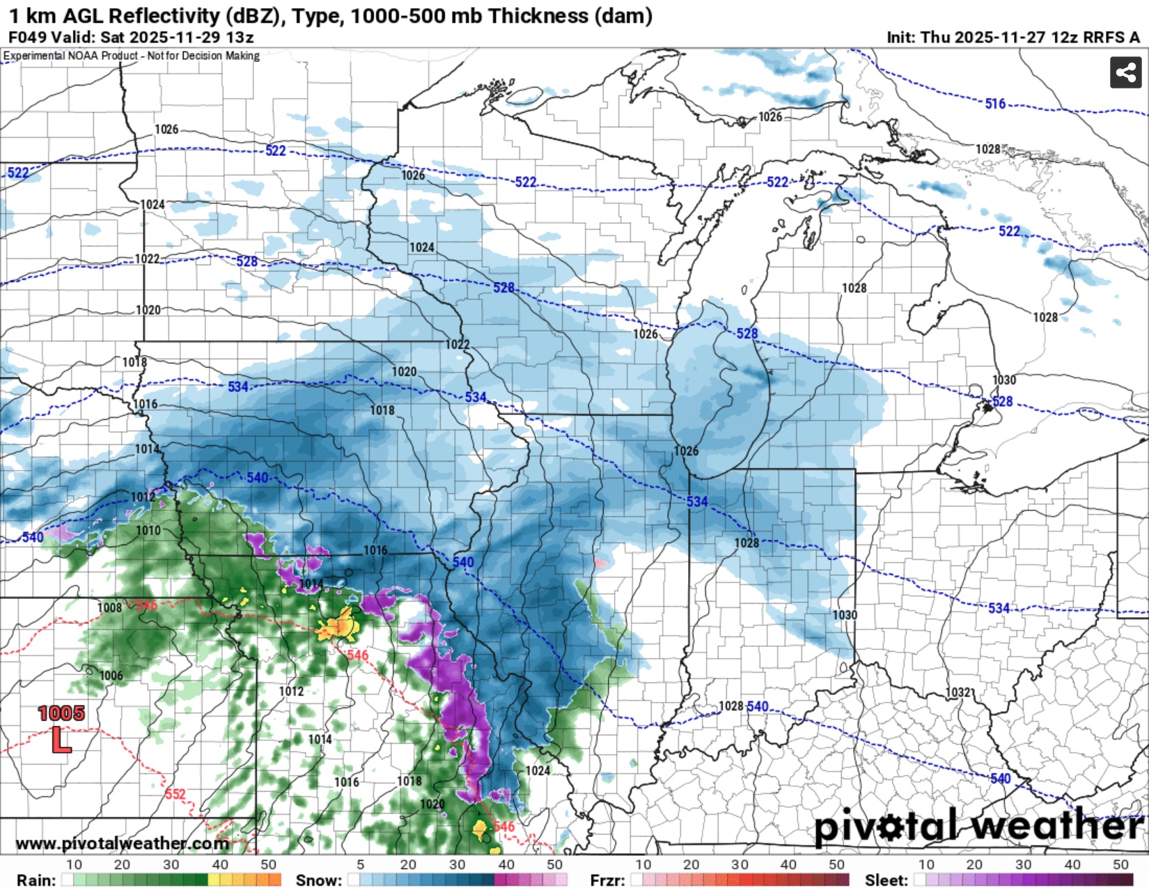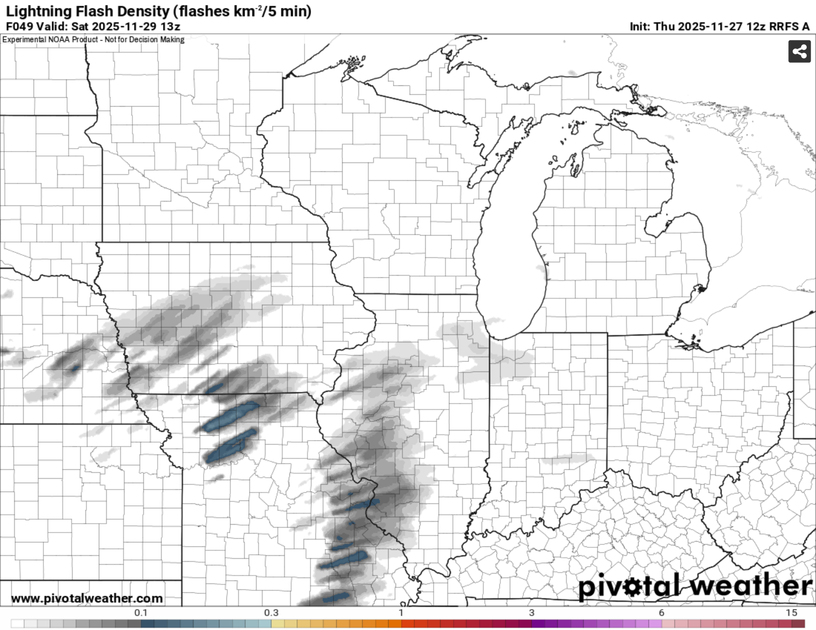 I've never used the RRFS for snow before but it's interesting to see it hinting at thundersnow. I have noticed that the lightning algorithm on the HRRR has been completely worthless for predicting thundersnow (or at least the algorithm CoD uses) -