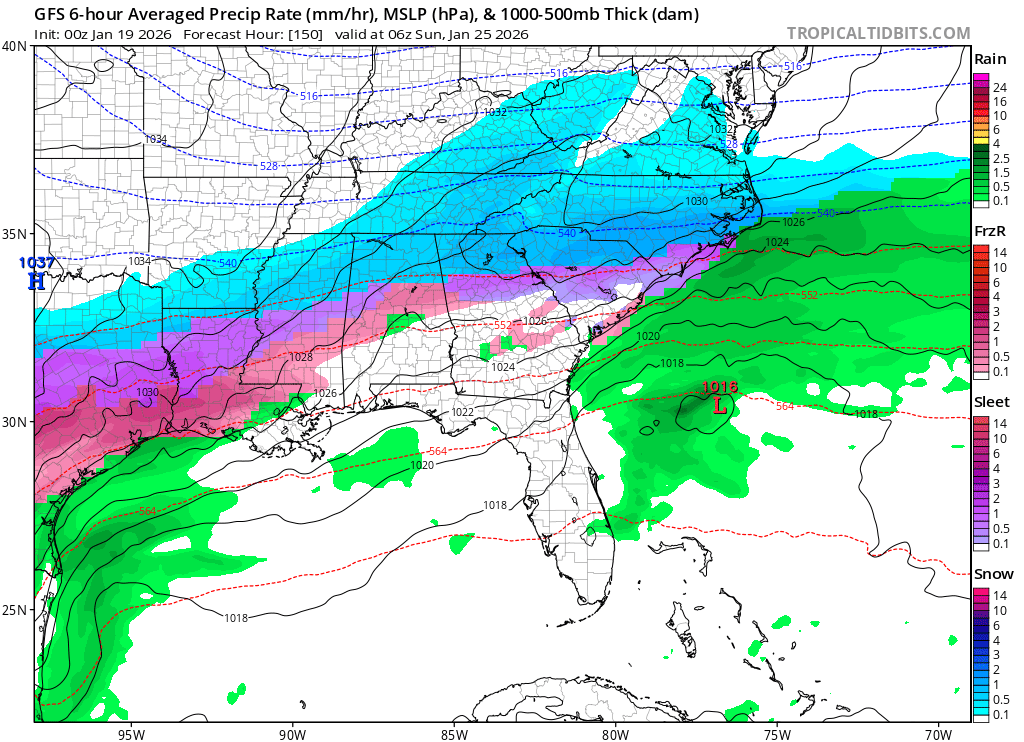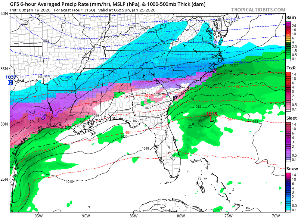 GFS looks like it could be 2 rounds. First one a little further south for southern past of NC and in SC. Looks like another wave behind it -