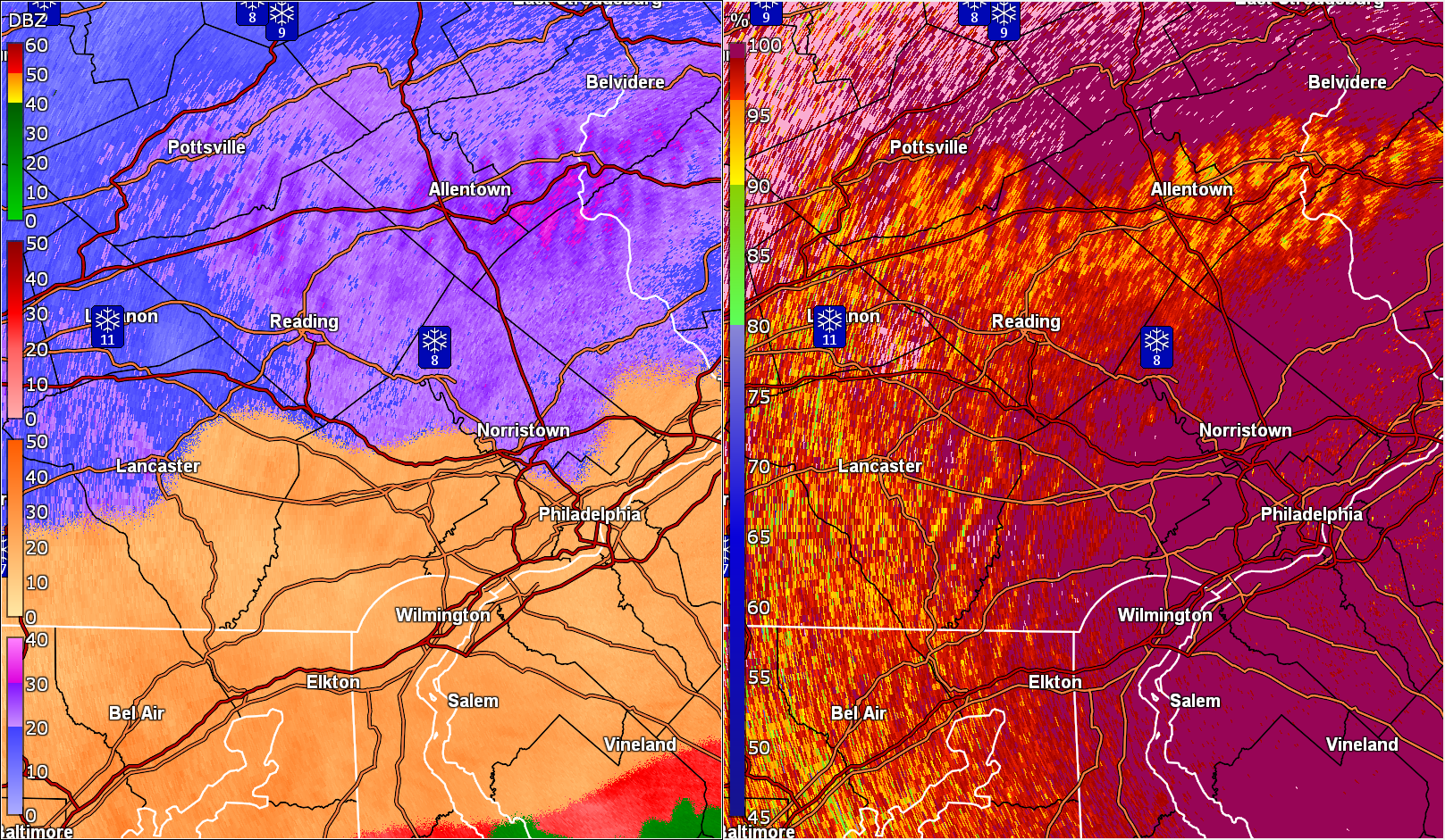 I can confirm that the orange echos on radar scope is heavy sleet