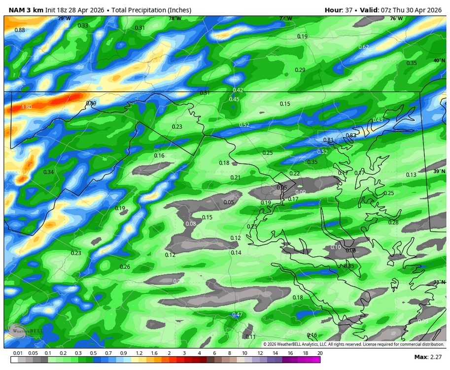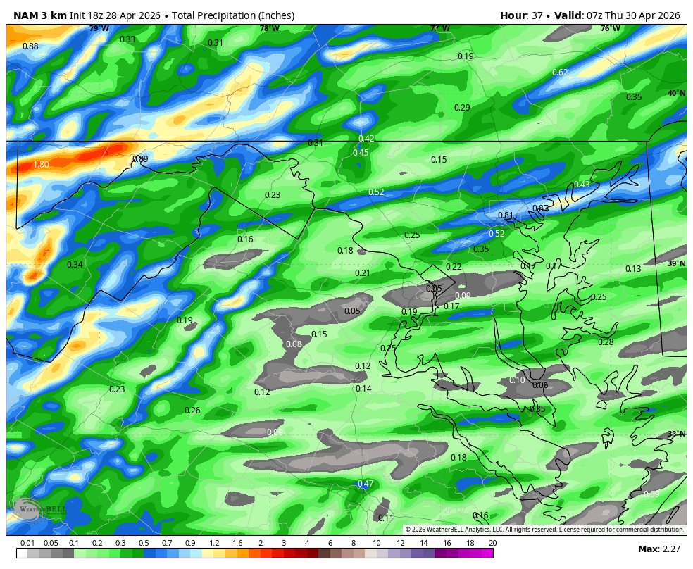0.33” overnight and 1.63” for April. I think we all need the midweek system to work out.