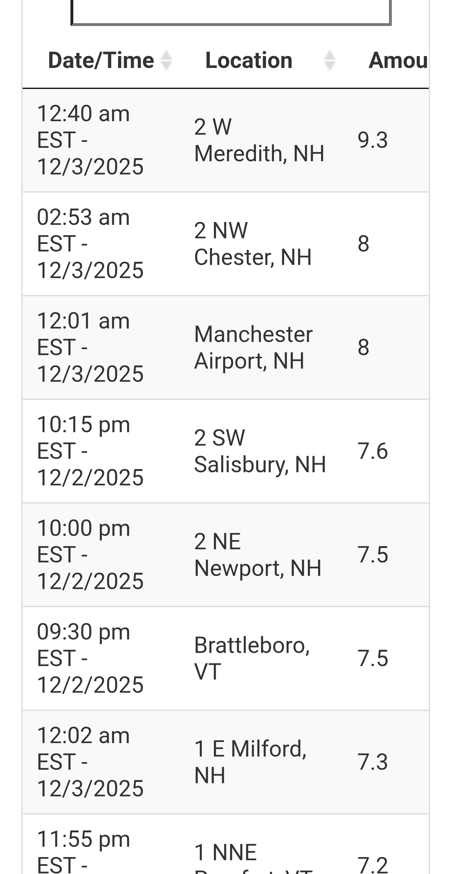 28.6° -SN 9.2” Latest core 1.5”/0.08” Storm total 9.2”/0.71”