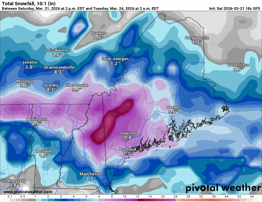 Only in Maine is several inches considered "light".