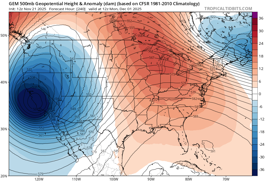 Very short post. The Baja low looks legit. It is still possible that is feedback, but unlikely since both the 12z CMC and GFS both have it. After the Thanksgiving cold snap, a standing wave will result due to the Baja low. That BL will pump a ridge over the eastern 2/3 of the United States w/ a rare Bermuda high set in place to start December. Record highs are possible over some portions of the SE. It will take some time to break all of that down. Right now, the bigger concern is that ensembles continue to hold the cold pattern in the d10-15 range as does LR ext modeling. This could be a delay in the overall cold pattern or it could mean that modeling is just wrong. Something is gonna have to give though. The MJO is set to rotate into cold phases. Either the MJO forecast plots are wrong OR modeling is simply not recognizing the MJO plot quite yet. Remember, sometimes modeling will not "see" MJO influence in the d10-15. I would guess we will see a very strong cold from around D10, and that unleashes the cold into Lower 48 (east of the Rockies). Interestingly, I do believe the Euro Weeklies has developed a cold bias. I don't know if they tweaked something, but it seems to be the default in the week 3-6 range??? -