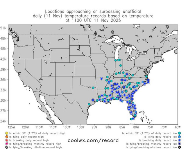 Hate to drive the stake deeper into your rear vortex…but it was a foot plus with blizzard conditions, right on the beaches last year down there on the gulf coast of western Florida, Alabama and New Orleans. The good news is…we are going to get ours this year…it’s our turn this winter. -