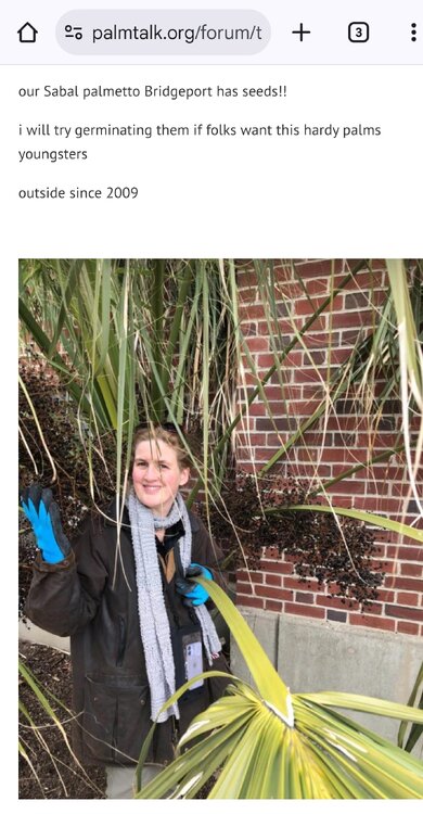 Wow, I would have guessed maybe Maryland was furthest North for a palm. The one you posted does have the advantage of being right up against a building. -