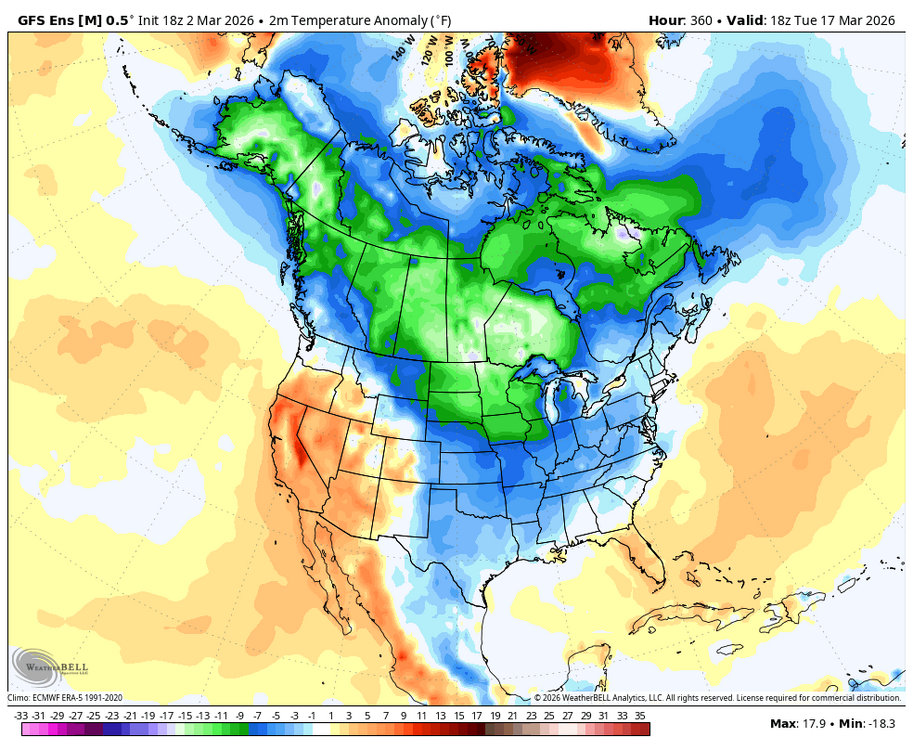 Reminder: phase 7 has averaged even colder than 8 in March following Niña winters: March Niña by phase (whether inside or outside COD): 1: +1.0 (near Niña Mar climo) 2: -0.1 3: +1.8 4: +0.3 5: +2.1 (2nd warmest) 6: +2.6 (warmest) 7: -1.7 (coldest) 8: -0.7 (2nd coldest) AVG: +0.7