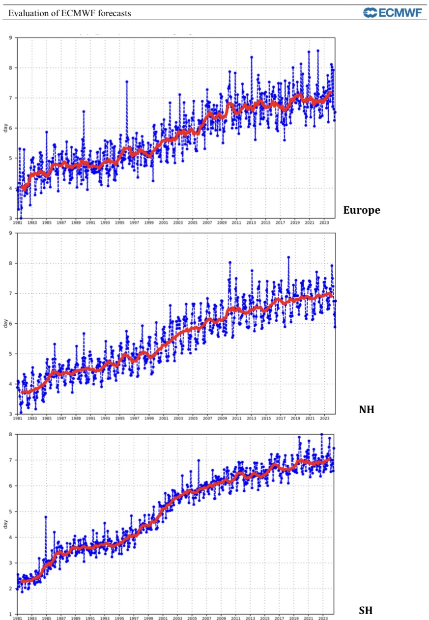Sorry, the data just does not bear this out. The steady progression of model fidelity and accuracy continues and will actually start another upward spike as AI-based models are integrated with physics-based models. -
