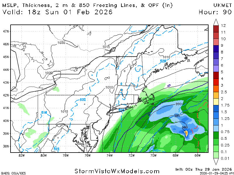 Possible coastal storm centered on Feb 1 2026.