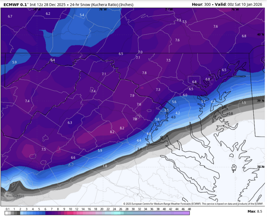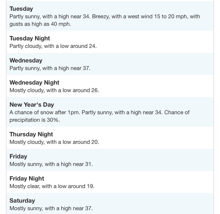 Looks like we could have a trackable clipper for New Year's then looks to be potential for a bigger storm from around 5th through 12th. -