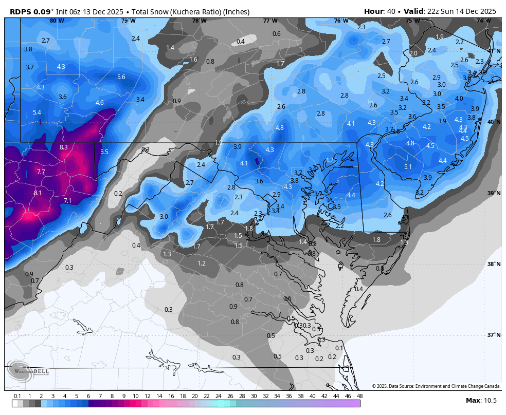 Wow! I woke up around 1 this morning and was shocked. The heaviest snow of the night was coming down hard. Somehow I picked up between 1/2-1inch of snow at that time. This morning it’s melted from underneath down to between 1/2-3/4 inch. It’s all on the grassy surfaces, rooftops, trees, and vehicles though. Not really that much, if any accumulation on my street. Really an overachiever here. I guess the rgem and RAP pretty much sniffed this one out. Seems like the rgem does really well with clippers, but like others had said, it’s been so long since we had one I forgot what a clipper looks like -