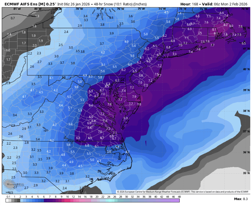 Possible coastal storm centered on Feb 1 2026.