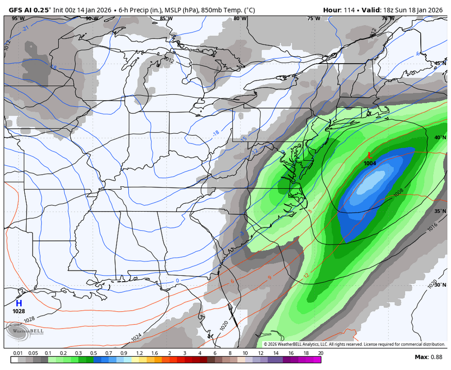 AI GFS showing a storm offshore, moderate precipitation for Sunday during afternoon and evening. You want more than ICON and AI GFS in your corner thouhh or you end up with a 1/16 repeat