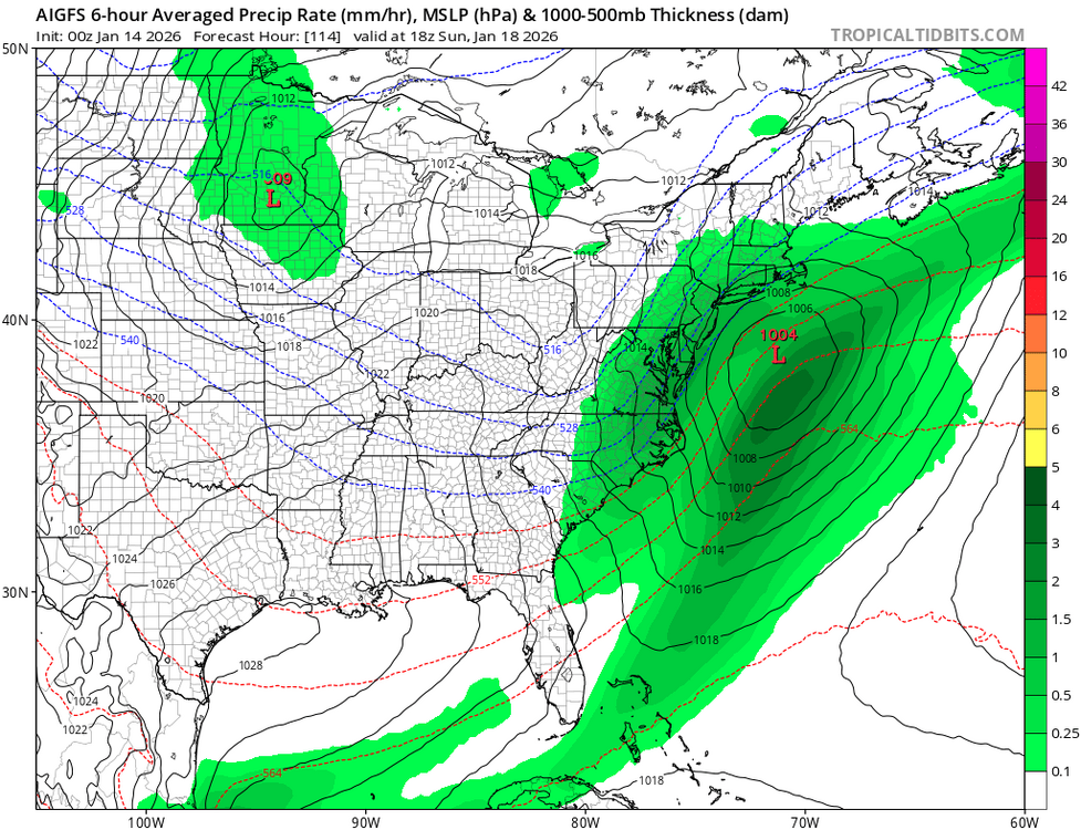 yea wow the AIGFS looks great, good trends. It's likely mostly snow, toss that look on Icon on TT. Lets just bring it back west and stronger and we can worry about thermals later. But that AIGFS is mostly snow.