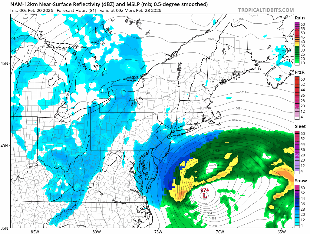 We’re at the point where we’re running out of time for any significant trends. It’s likely that the GFS is too amped and the Euro is too progressive. Blend them together and it’s still a warning level event for our area. That’s enough model watching for me tonight. I need sleep.