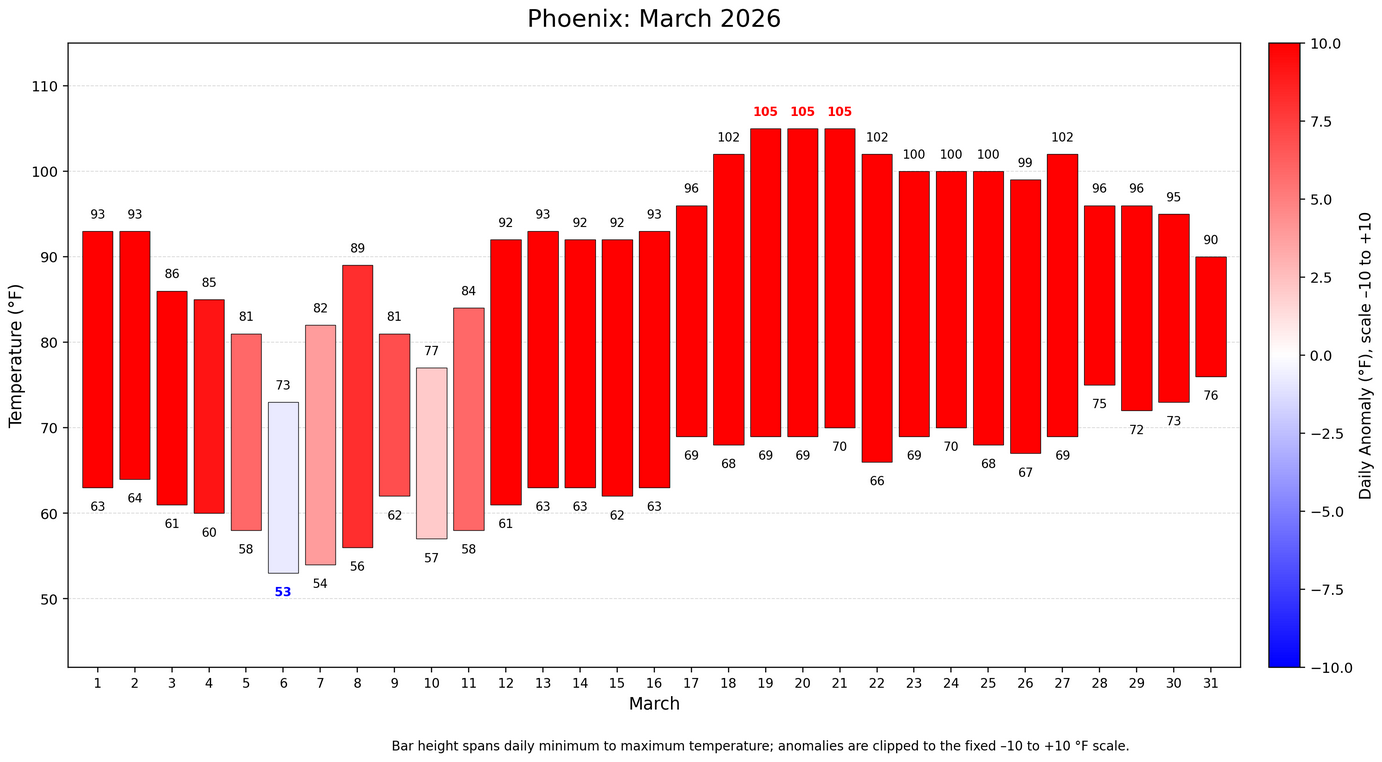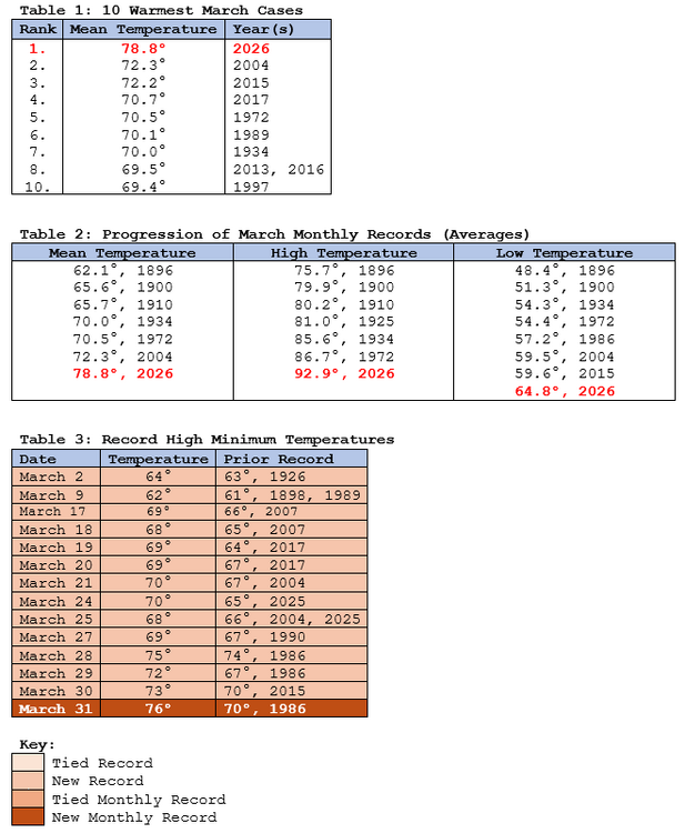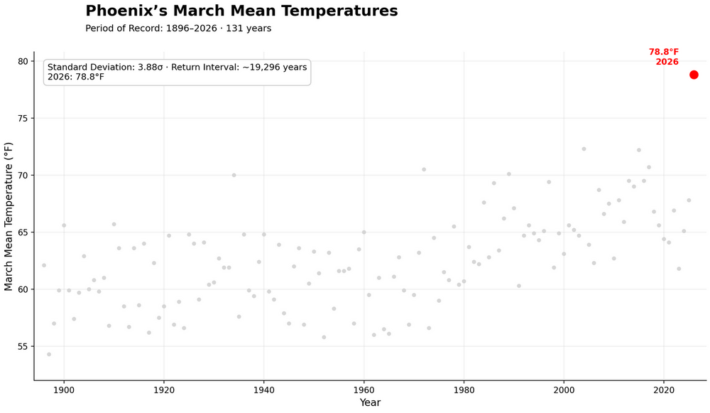 March stats are in from Lanco: There were certainly more "ups" than "downs" on the wild March 2026 temp rollercoaster, and those "ups" were also much more significant than the "downs." As a result, it concluded as the 8th-warmest March on record. -