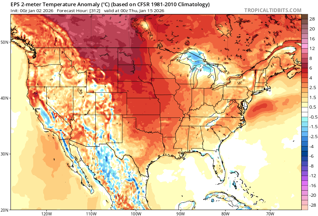And if the gradient sets up north of you, then it's certainly far north of SNE and NYC area. All the weather stories are talking about the record warmth across CONUS next week. Warmest anomalies will be to our west of course, and Central US has barely seen a flake all season. That's a bit telling imo -