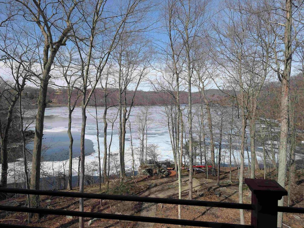 Pleasantly surprised that my natural snow is still surviving, 650' elevation Mahopac. The lake is still pretty covered, but breaking up fast.