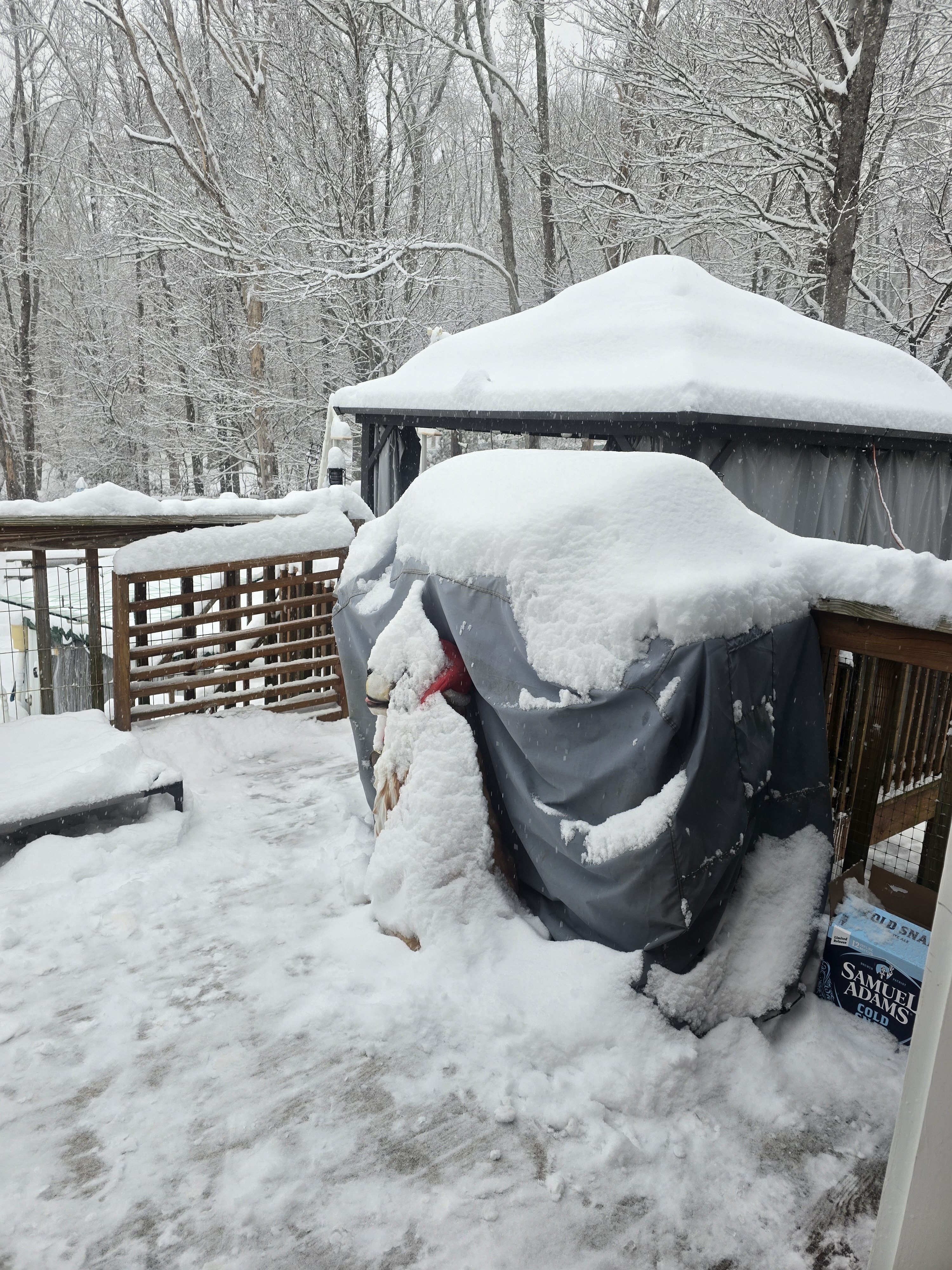 1.5" should be mostly done well see if we can get a little more this afternoon. Right in the middle of my range of 1-2 so im happy with that -