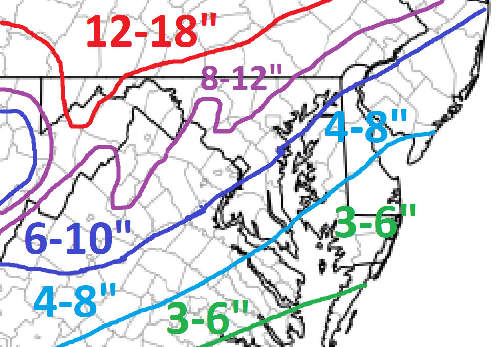 10. Not grading my last minute adjustment as the storm started for many by then. This is the one I put out 2 days before. I think 90% ended up within the ranges. BWI busted high by 1”. I was too high along the southeast fringes. I’m ok with this.