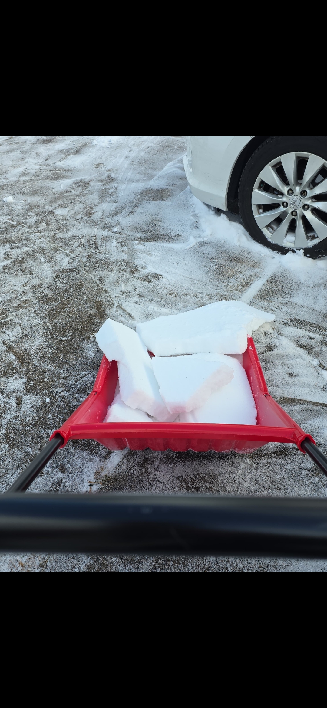 2. We shoveled snow yesterday then used our super scooper today to get at the compacted sleet. This thing is a game changer. Scraped the sleet off like a hot knife through butter. Currently being passed around the neighborhood, hope we get it back. Its a game changer. What is nice too is the bottom is like a sled so you just slide it up the snow bank and dump. Super easy on the back