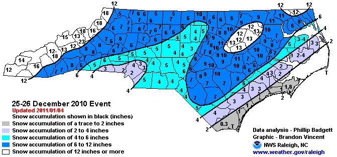 11. There were snowdrifts up to 8' on the Crystal Coast from that event.