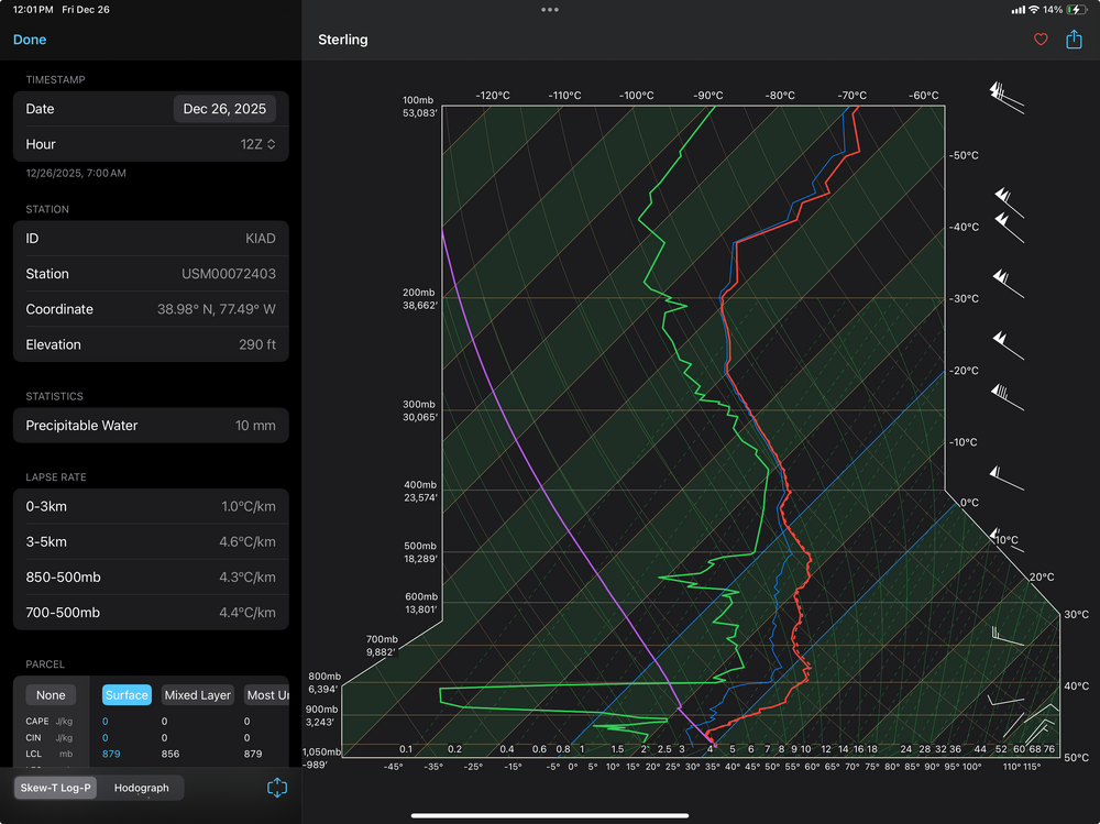 This was the 12z sounding at LWX (Dulles) this morning at 12z, which was similar to PIT’s. One heck of a dry layer between 900-800mb at that time. There will certainly be some dynamic cooling to be had as this event gets going but also that dry layer is going to need to be overcome as well. Precip is already hitting the ground in a lot of C-PA spots though looking at mPING obs, but also could remain more scattered for awhile like the near term guidance has been hinting. -
