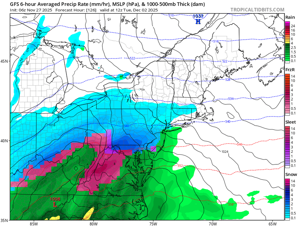 20. Even with a demamp'd storm, notice how 'warm' it is. The writing is on the wall with this one. Flat flow we walk the tightrope, amped up it pumps in too much warmth. Fall line and east are toast. On to the Dec 6 system.