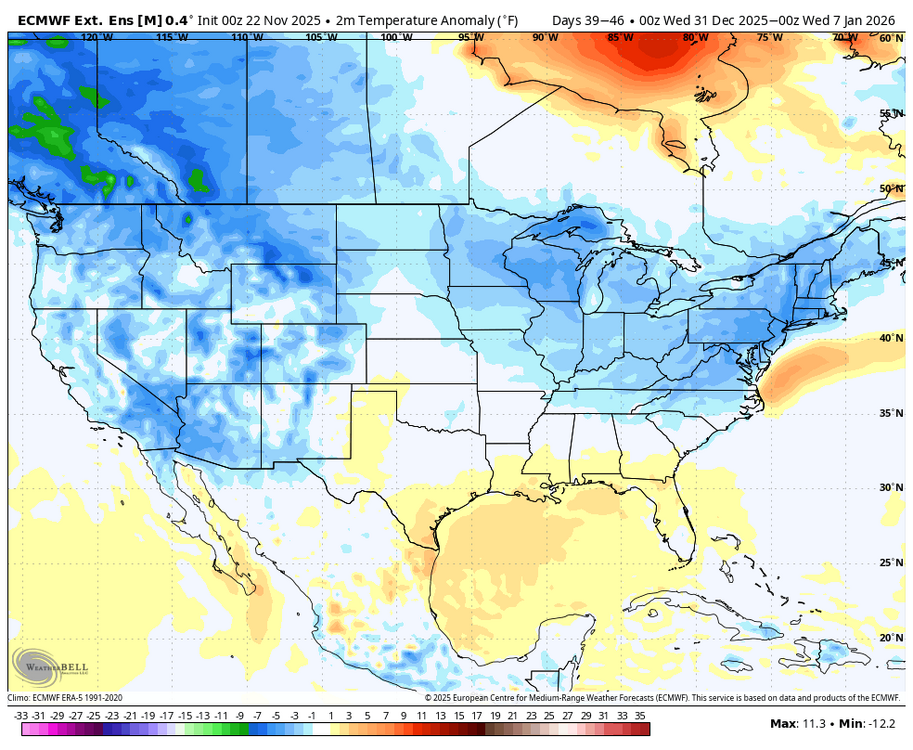 It's always interesting when the CFS monthly is out of sync with the weekly version of itself. December looks much better on the weeklies than the monthly one that @40/70 Benchmark showed. Euro weekly backs it up. Never confident in these long term models but it's nice to see the signal getting better as we get closer to December rather than the other way around. Hopefully it's not hallucinating. -