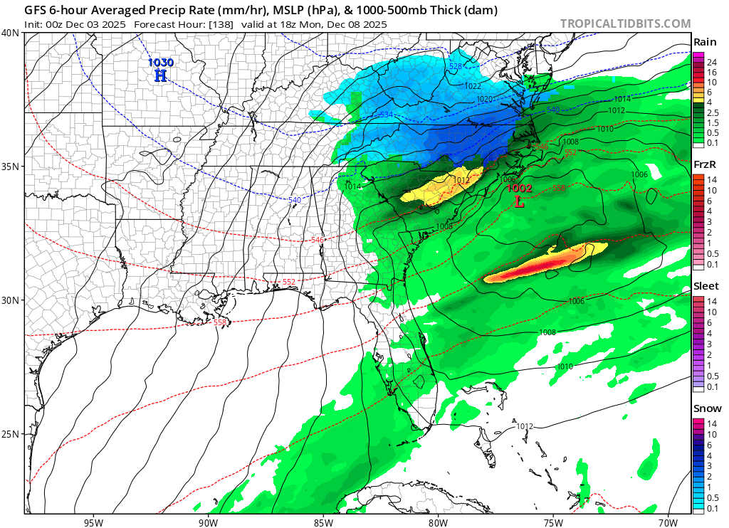 Actually looks like the jackpot's going to be in North Carolina with moderate snow into Central VA, which doesn't seem like a terrible situation to be in at this range -