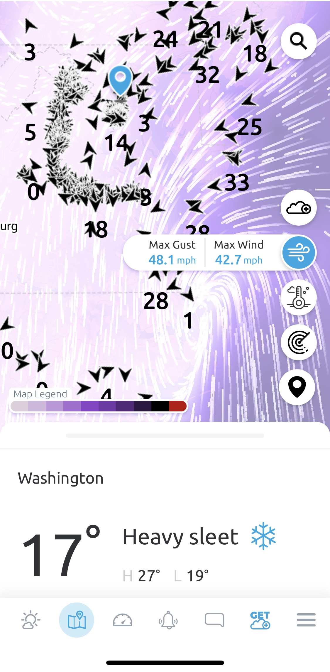 Those yellows to the southwest of y’all look like they want to break free from the CC sleet line. Hope you guys get crushed with that stuff. Solid snow back home in NoVa, meanwhile we’re constructing the next glacier here.