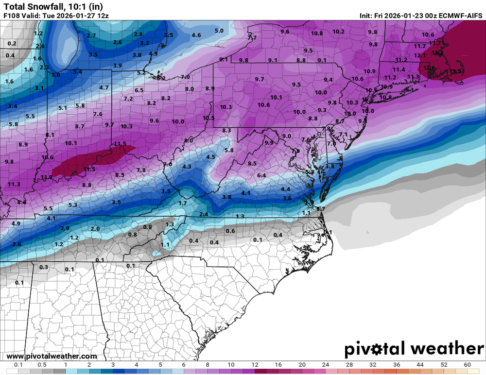 Brother, the folks to our south have cashed in several times since the last time Baltimore and the north Baltimore burbs got anything approaching a respectable storm. I haven't cracked 6 inches in a DECADE. Of course - of COURSE - I would dearly love for the entire region to get buried under 3-foot drifts of wind driven snow, but if St. Mary's has to get skunked for me to get 10 inches, I would throw them overboard so fast their heads would spin. A lot of the board angst and frustration is coming from folks in our area that are in an incredible snow drought and if a worst case scenario comes true and we end up with 4-5 inches and some slop, I'm not gonna pretend not to be incredibly disappointed. 10 inches and some sleet - woo! Pop the champagne! I'm all in. I don't need 2 feet to be happy. But yet another rug pull while places within driving distance get deep snow? It fucking sucks and there's no sugarcoating that. -