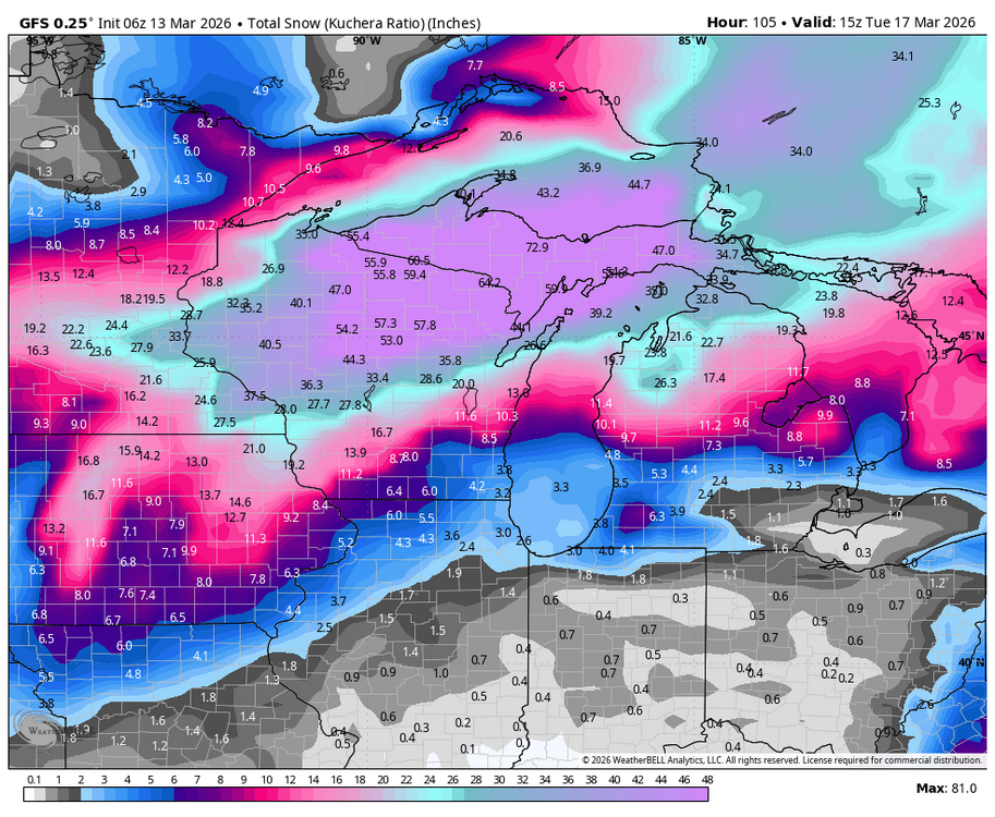 9. The Keewenaw is having a great winter with more on the way. 300+ Inches in Keewenaw That is one place that is pretty reliable for snowfall each year.
