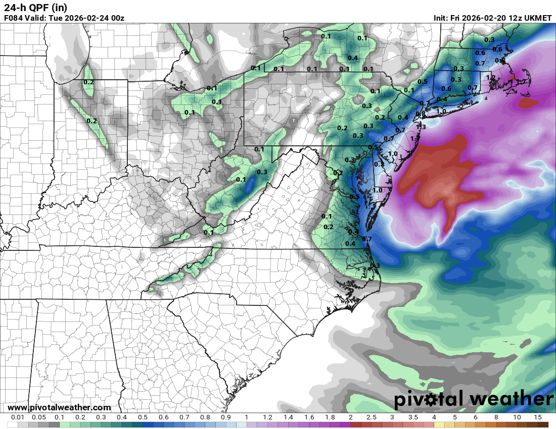 Trying this again. 18z except for the UKMET/GFS/Euro. Precip that falls after 00z (Sunday 7pm) which should be able to accumulate outside of the favored areas. -