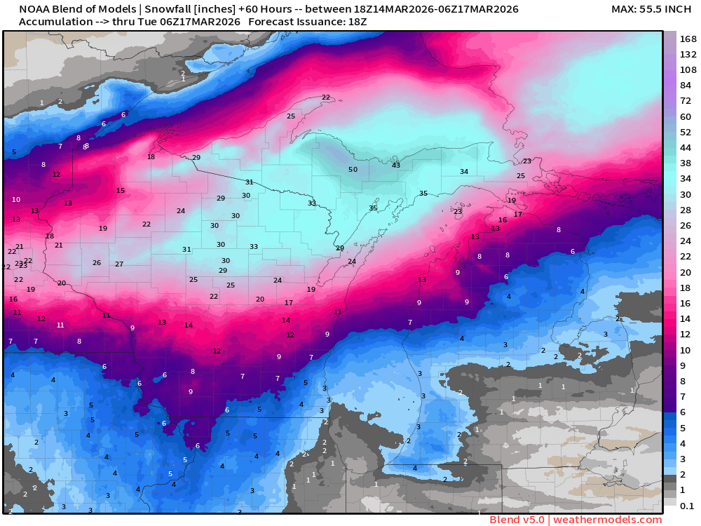 13. The problem is that it won't be cold enough to snow. Average highs are in the mid 50s and average lows are in the mid 30s. We are probably aren't going to stray too far from these averages the next few weeks.