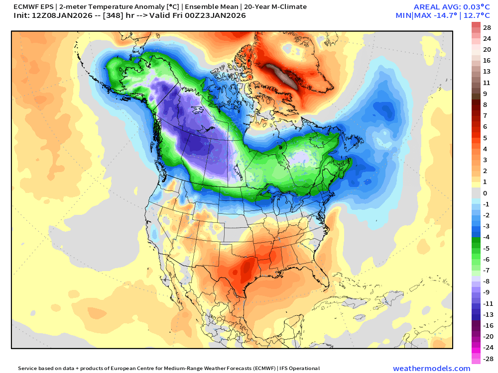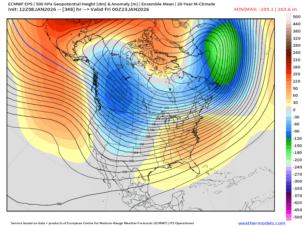A little bit of Wilton on that look late in the game (after maybe a few shots at a coastal in the D10-13 range)....some people might get a little scared of the orange colors at H5 getting close to NE, but that is a frigid northern tier look with that WPO/AO domain look. -