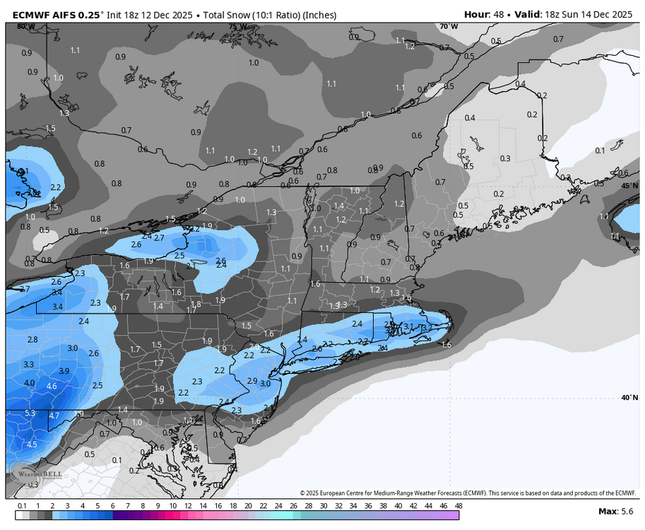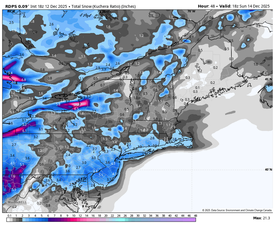 I still like my call of 1 to 3 for the LSV with a few lucky spots in York or Lancaster getting 4. The lower amounts of the range are likely to be north & west of Harrisburg. The higher end of the range is favored towards eastern York & Lanco. I think MDT has a decent chance of getting 2 inches. The RGEM & the Euro AI have been consistent the last couple of days & most closely resemble my current thoughts on this event. -