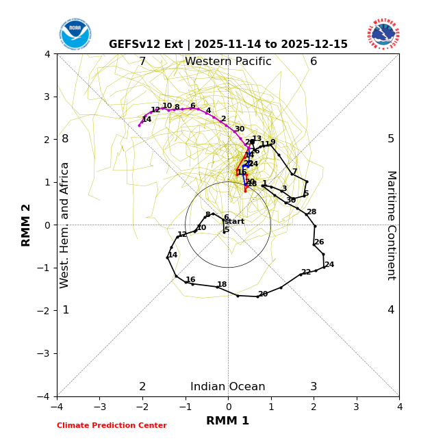 Latest EPS and GEFS extended MJO both head into Phase 7 by the end of the month after a long stall in warm Phase 6. Question: DT states 7 is still a warm phase in December while JB says 7 is ok in December. Anyone have data on this topic. If 7 is still warm we will wait until mid December for Phase 8.