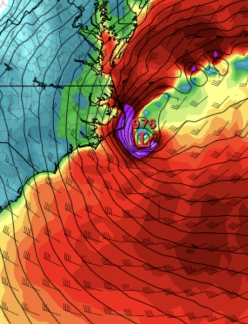 the storm on the 12Z GFS does turn the corner off of FLA and redevelops right over Hatteras stalls and deepens - But then it hits a brick wall and makes a hard right turn