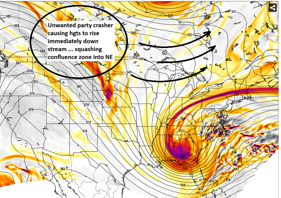 The ULL was a little slower and that trailing shortwave got a little more SE…maybe it feeling a bit of a “pull” last minute? I wish this s/w would just dive in sooner behind it. -
