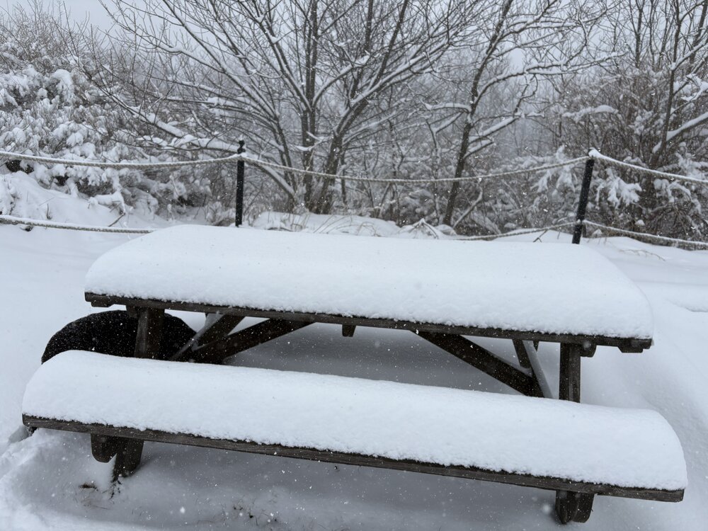 Not letting me add multiple photos but this is a pic from beside our place at around 2pm. This is before the heaviest snow which fell from then till about 6. Now it also was windy but that’s roughly 8-10 on the seats already. Long and short- as crazy as it sounds (and in the valley 3000 feet below they got a dusting!)- this actually happened at Wintergreen. I don’t know if it was a perfect spot for upslope or what- but it was easily over a foot. Incredible to witness! -