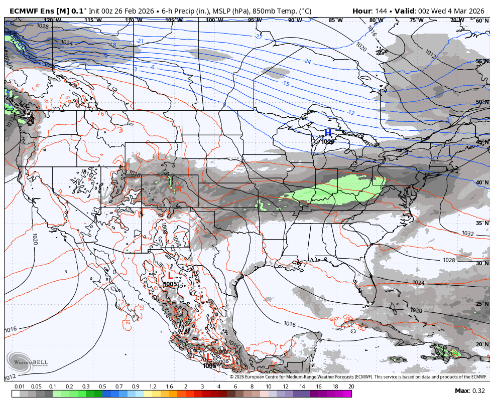 My gut tells me a cold shot on Monday, but no snow. If there is a precip event, it will be Tuesday night into Wednesday, and will be primarily rain. After that will be a huge warm up.