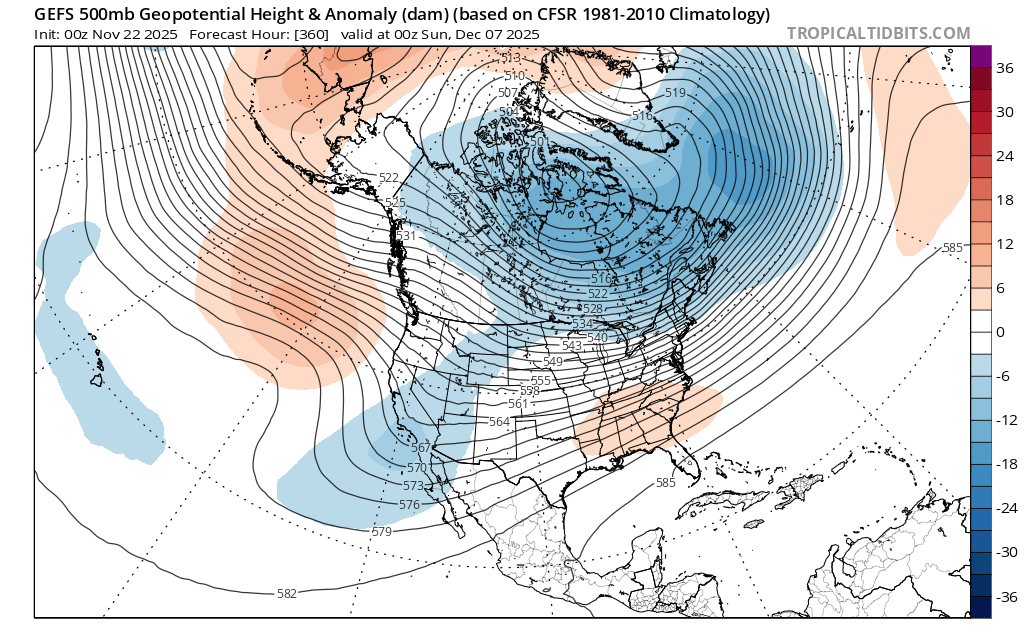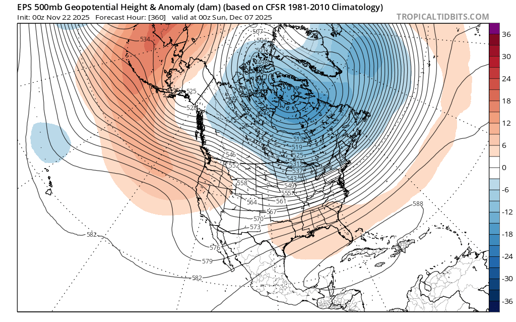 As has been discussed ad nauseam here, I don't believe there's anything to worry about regarding a colder and *potentially snowier* pattern setting up mid-December and beyond for the northeast. The SE ridge will be suppressed enough to allow the baroclinic boundary to slowly inch south and eastward towards the coast, the CPC map you shared is highlighting that (just compare weeks 3-4 to weeks 2-3). It won't happen in an instant, but the cold will try to bleed south into the northern Mid-Atlantic towards the second or third week of December which should offer chances of snow. The nuances in the flow are impossible to figure out at this point, hence *potentially snowy*. Fail mode is obviously if the -PNA overpowers any SE ridge suppression.