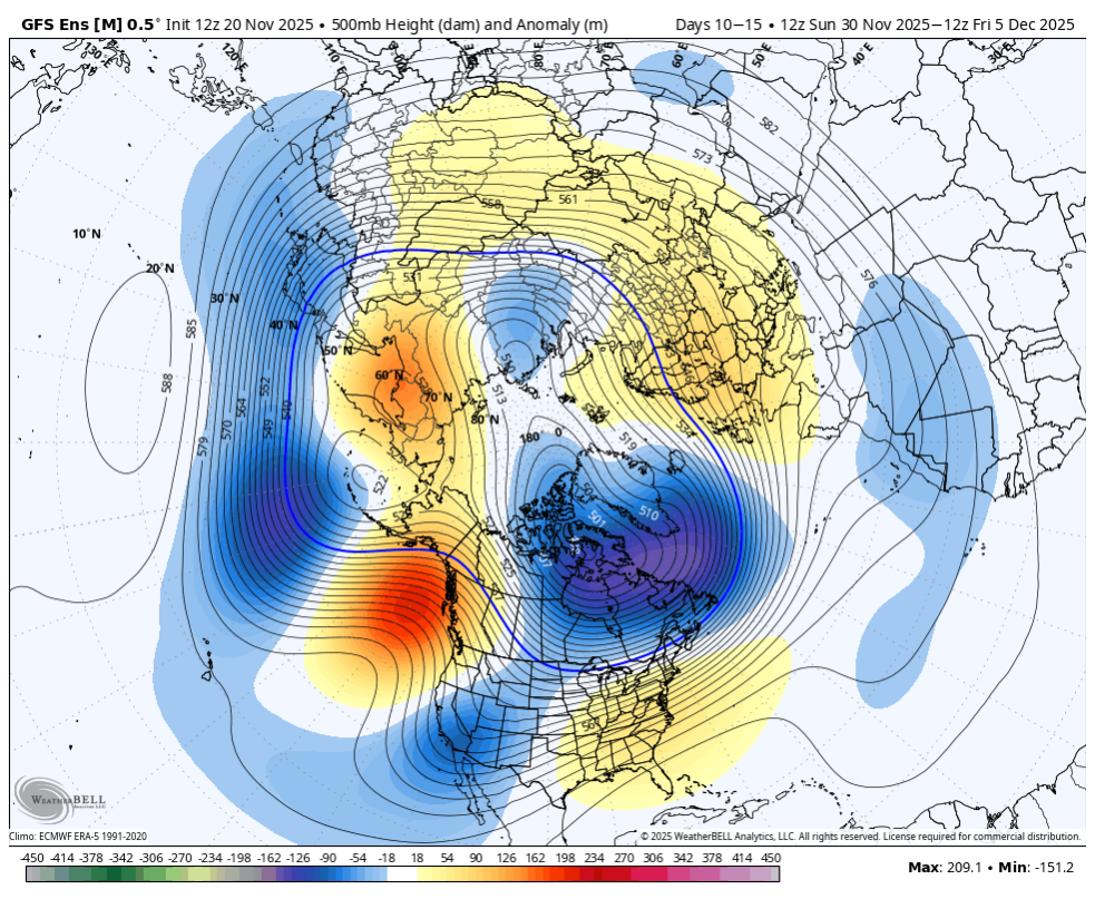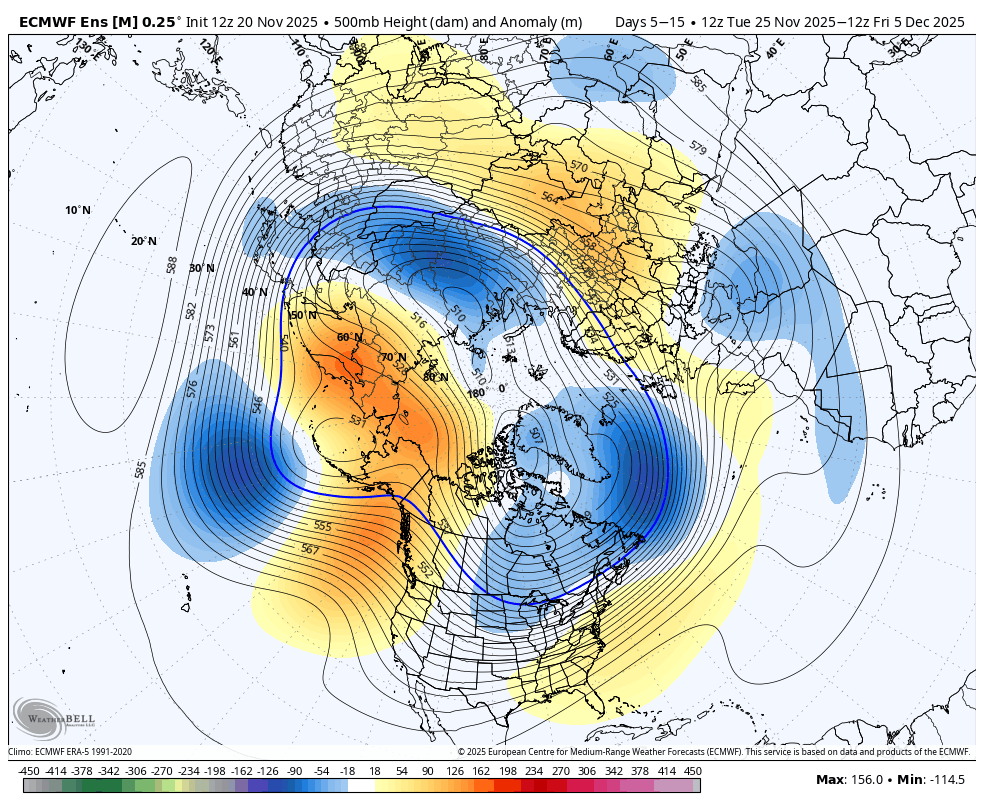 Close to record heat the 4th if that were to materialize. You can see huge motherlode of cold in Canada. That'll drive down on the heels of a major cutter. Then a boundary should ultimately setup somewhere along the Apps overall until the MJO goes toward late Ph 7. or the NAO goes negative. Either will drop that Boundary furthe SE. IF both coincide then the upper SE should see Snow Opportunities. If MJO ph.8 coincides with Blocking, fun and games for the deep South likely, imo.