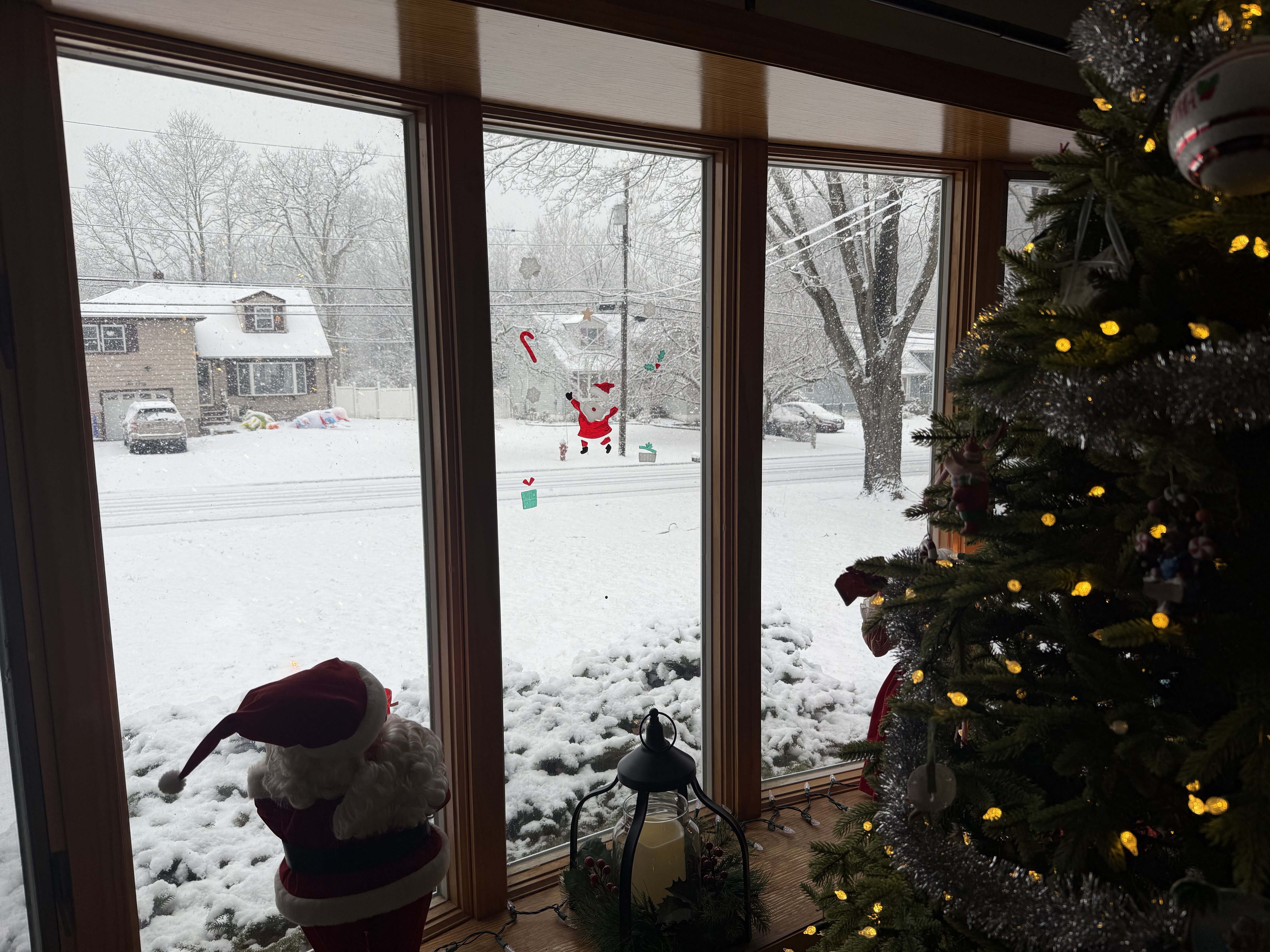 pleasantly surprised as its 32 in New City and I would guesstimate that we have 2 inches give or take,,,,my son is visiting with his dog who rarely sees snow and she and I are in the back yard loving this !!!! And to you naysayers and haters who said this wouldn't be possible, well I got 3 words for ya " Let It Snow "