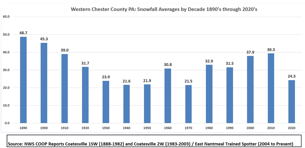 Well if you only go back to 2020 for sure....but 2010-2019 was snowier than the 70's / 80's / 90's....would you believe the 1970's were the least snowy decade?? -