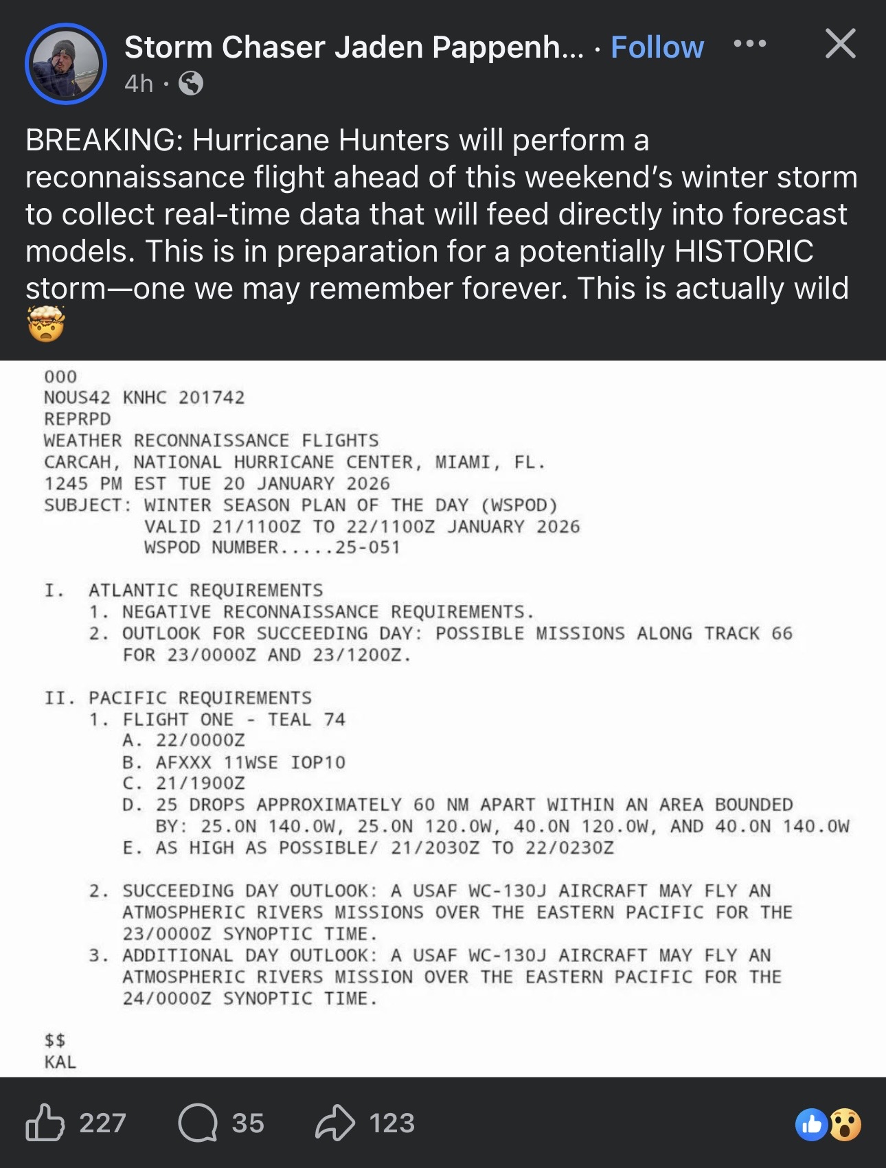 Looks like the Hurricane Hunter is going to make a special flight for some data over the Pacific to ingest into the models. Pretty cool. -
