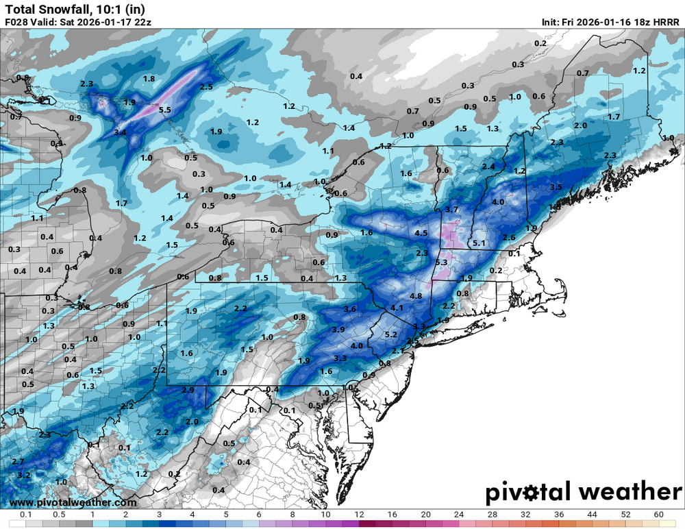 HRRR still way NW, man what a thump for NNJ through Litchfield county into VT. Widespread 3-6” with a 6-12” swath -