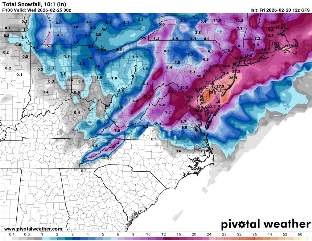 From calendar silliness side...when was the last time BWI exceeded 5" this late in February? I still only have 3/4ths of an eyebrow raised...we carry this another 36 hours the it'll be -